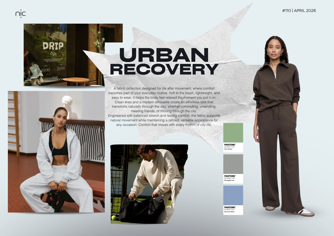 A fabric collection designed for life after movement, where comfort becomes part of your everyday routine. Soft to the touch, lightweight, and easy to wear, it helps the body feel relaxed the moment you put it on. Clean lines and a modern silhouette create an effortless look that transitions naturally through the day, whether commuting, unwinding, meeting friends, or moving through the city. Engineered with balanced stretch and lasting comfort, the fabric supports natural movement while maintaining a refined, versatile appearance for any occasion. Comfort that moves with every rhythm of city life.