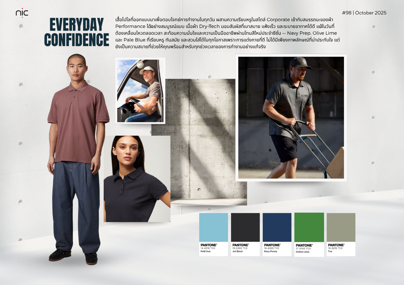 เสื้อโปโลที่ออกแบบมาเพื่อตอบโจทย์การทำงานในทุกวัน ผสานความเรียบหรูในสไตล์ Corporate เข้ากับสมรรถนะของผ้า Performance ได้อย่างสมบูรณ์แบบ เนื้อผ้า Dry-Tech มอบสัมผัสที่เบาสบาย แห้งเร็ว และระบายอากาศได้ดี แม้ในวันที่ต้องเคลื่อนไหวตลอดเวลา สะท้อนความมั่นใจและความเป็นมืออาชีพผ่านโทนสีใหม่ประจำซีซั่น — Navy Prep, Olive Lime และ Pale Blue ที่เรียบหรู ทันสมัย และสวมใส่ได้ในทุกโอกาสเพราะการแต่งกายที่ดี ไม่ได้มีเพียงภาพลักษณ์ที่น่าประทับใจ แต่ยังเป็นความสบายที่ช่วยให้คุณพร้อมสำหรับทุกช่วงเวลาของการทำงานอย่างแท้จริง