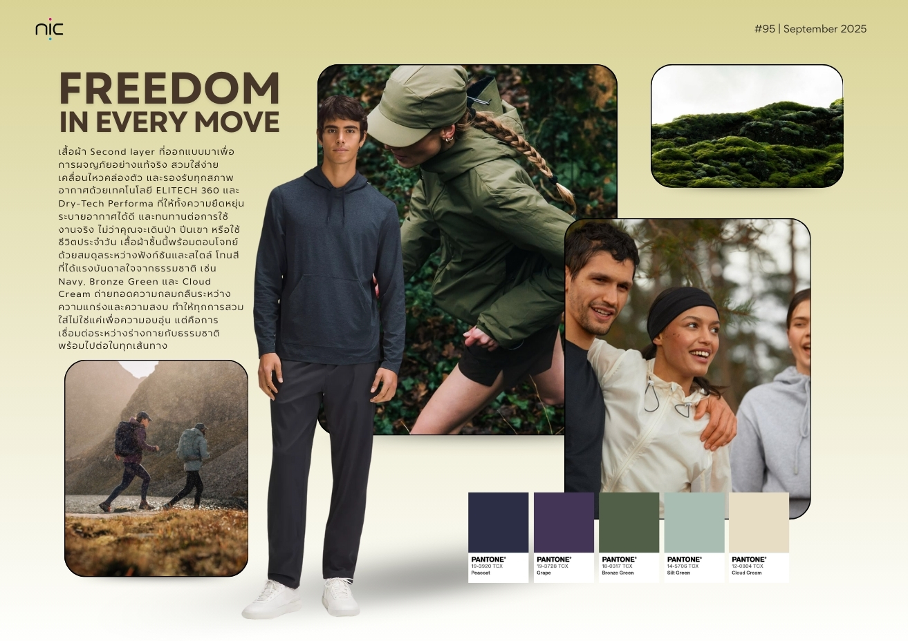 เสื้อผ้า Second layer ที่ออกแบบมาเพื่อการผจญภัยอย่างแท้จริง สวมใส่ง่าย เคลื่อนไหวคล่องตัว และรองรับทุกสภาพอากาศด้วยเทคโนโลยี ELITECH 360 และ Dry-Tech Performa ที่ให้ทั้งความยืดหยุ่น ระบายอากาศได้ดี และทนทานต่อการใช้งานจริง ไม่ว่าคุณจะเดินป่า ปีนเขา หรือใช้ชีวิตประจำวัน เสื้อผ้าชิ้นนี้พร้อมตอบโจทย์ด้วยสมดุลระหว่างฟังก์ชันและสไตล์ โทนสีที่ได้แรงบันดาลใจจากธรรมชาติ เช่น Navy, Bronze Green และ Cloud Cream ถ่ายทอดความกลมกลืนระหว่างความแกร่งและความสงบ ทำให้ทุกการสวมใส่ไม่ใช่แค่เพื่อความอบอุ่น แต่คือการเชื่อมต่อระหว่างร่างกายกับธรรมชาติ พร้อมไปต่อในทุกเส้นทาง